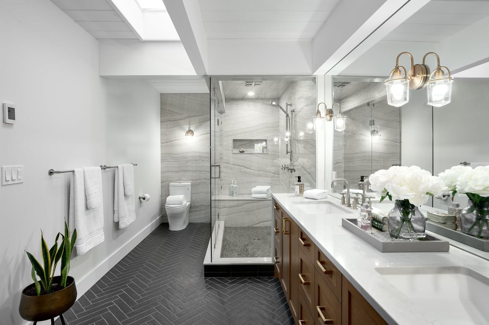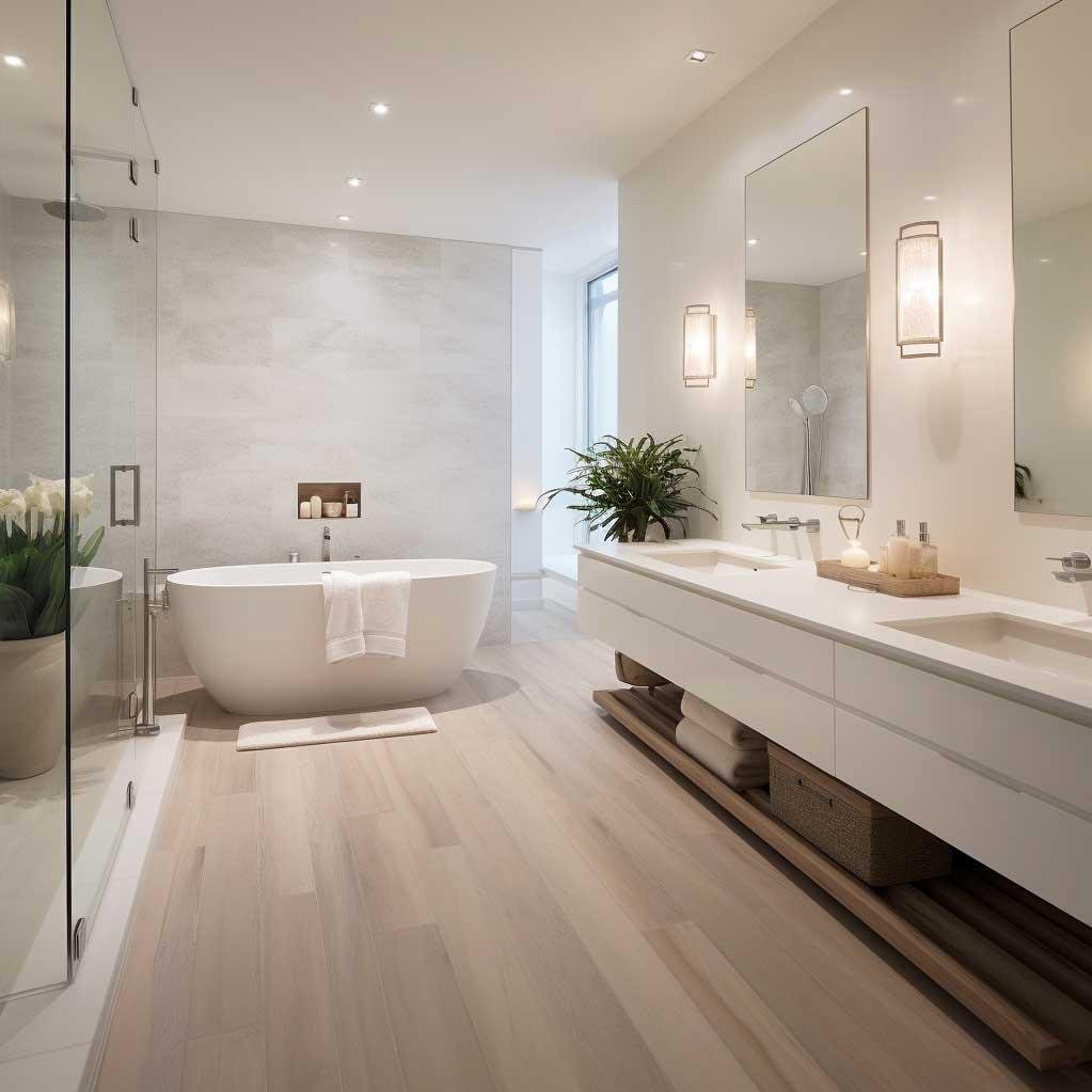 From wet-area redesigns and freestanding tubs to slab-style shower walls, custom vanities, and designer lighting, our bathrooms reflect the latest in luxury and function. And because we believe the right materials make all the difference, we offer a curated selection of bathroom vanities, countertops, and tile options to match your space perfectly.